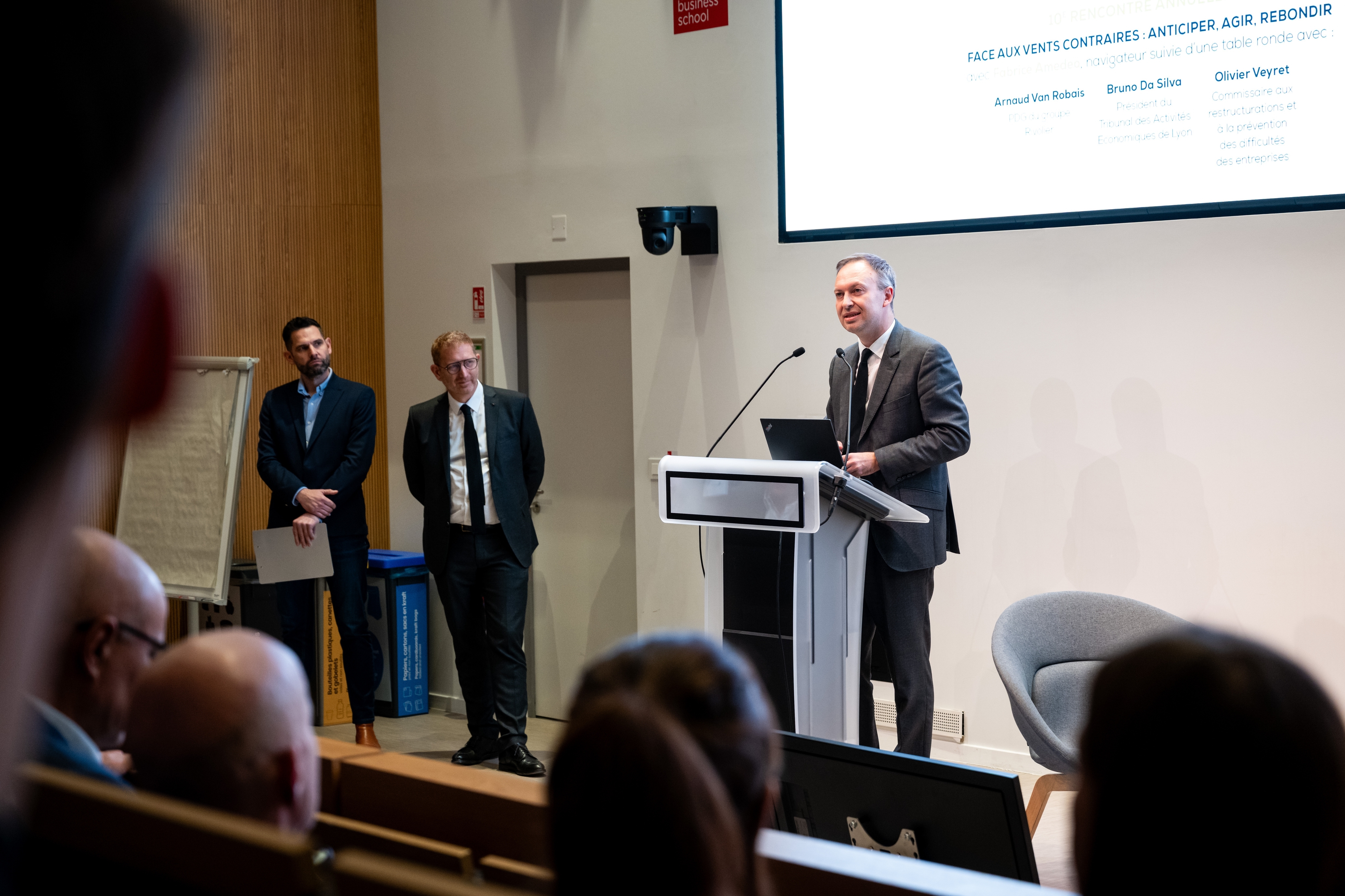 La table ronde animée par Julien Thibert a permis de croiser les regards experts de Bruno Da Silva, Olivier Veyret et Arnaud Van Robais afin d’éclairer les enjeux du retournement et les leviers d’accompagnement des dirigeants.